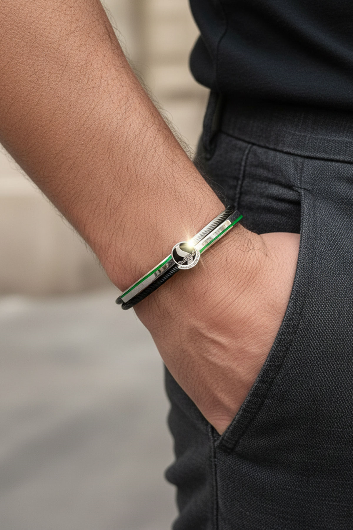 Sakaryaspor Gümüş - Siyah Bileklik -Logo